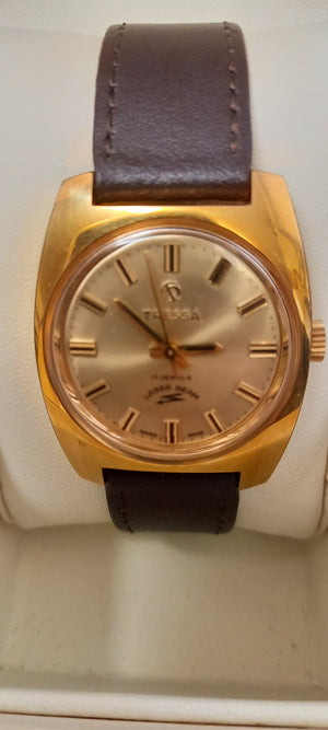 A swiss gents automatic gold plated Tressa watch in superb condition. With original box and paperwork. 17 jewel mechanical movement